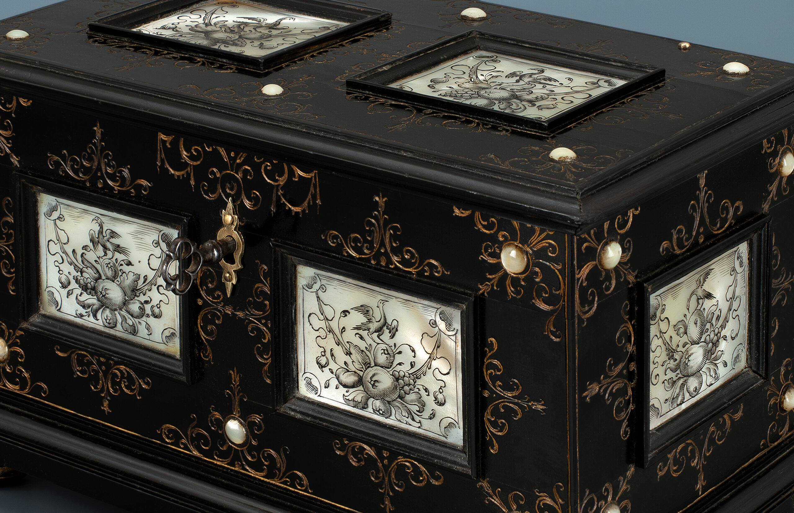 From a small oak cabinet datable to around 1700 a group of various objects looks at us. The…