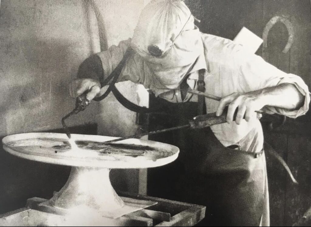 François Hugo in his studio working on the Compotier Rond, after a design by Picasso (Photo: screenshot from Insta Ateliers Hugo).