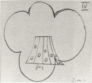 Later, after Picasso had gained full confidence in Hugo’s abilities, he wished to take a step further and create more complex forms without relying on ceramic models. In April 1958, Picasso produced design drawings for four compotiers – including the Compotier Trèfle – which Hugo had to translate as precisely as possible into silver objects. The likeness between the drawings and the finished compotier demonstrates how faithfully Hugo followed Picasso’s design. He likely traced the drawing and constructed the repoussé mould directly from it. As a result, the measurements were transferred and the finished compotier is a mirrored image of the drawing.