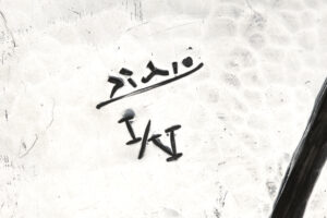 The present work, the fourth and most idiosyncratic of Picasso’s series of four compotiers, is the so-called Compotier trèfle, although that name is actually misleading, since it is not a clover with three but with four leaves. This example is the first of the five that were made after 1977, when Picasso’s youngest son, Claude, gave permission for the release of a new limited edition of compotiers in an edition of five. The pieces from this edition were numbered with Roman numerals. That the present Compotier trèfle is of slightly later manufacture can be seen, in addition to the numbering, from the base. In 1958 Hugo still outsourced the making of the base to a specialized workshop, which decorated the foot according to the instructions on Picasso’s design drawing. The smooth bases of the later editions, by contrast, were made by Hugo himself and are therefore stamped with his workshop mark. Moreover, the folded rim of the upper plate is characteristic of Hugo’s atelier. This is a technique he frequently employed as a dinanderie craftsman and one that is in fact unusual for silver.
